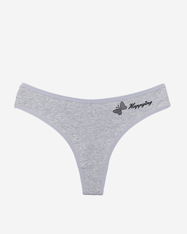 Классические хлопковые женские трусики-стринги серого цвета - Нижнее белье