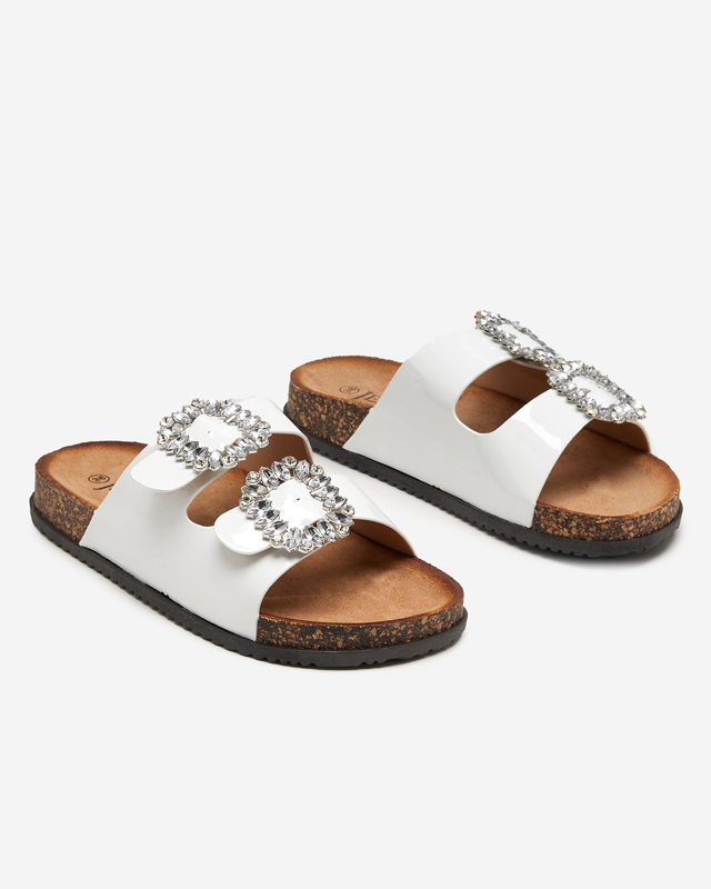 OUTLET Женские белые тапочки с декоративными застежками Olimika - Обувь