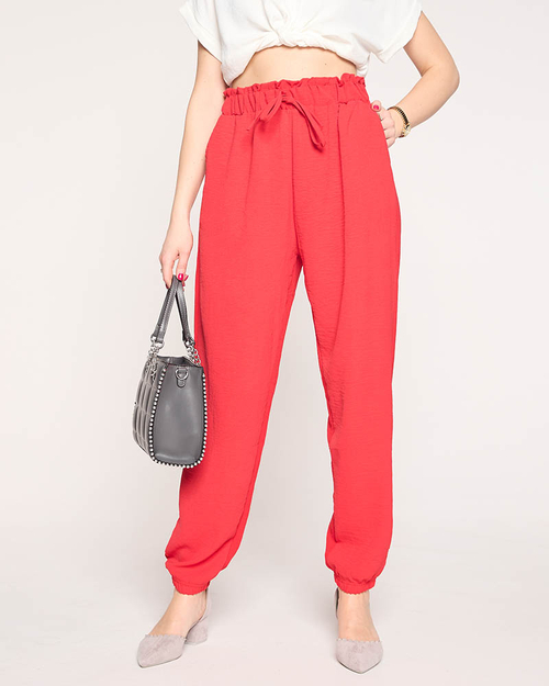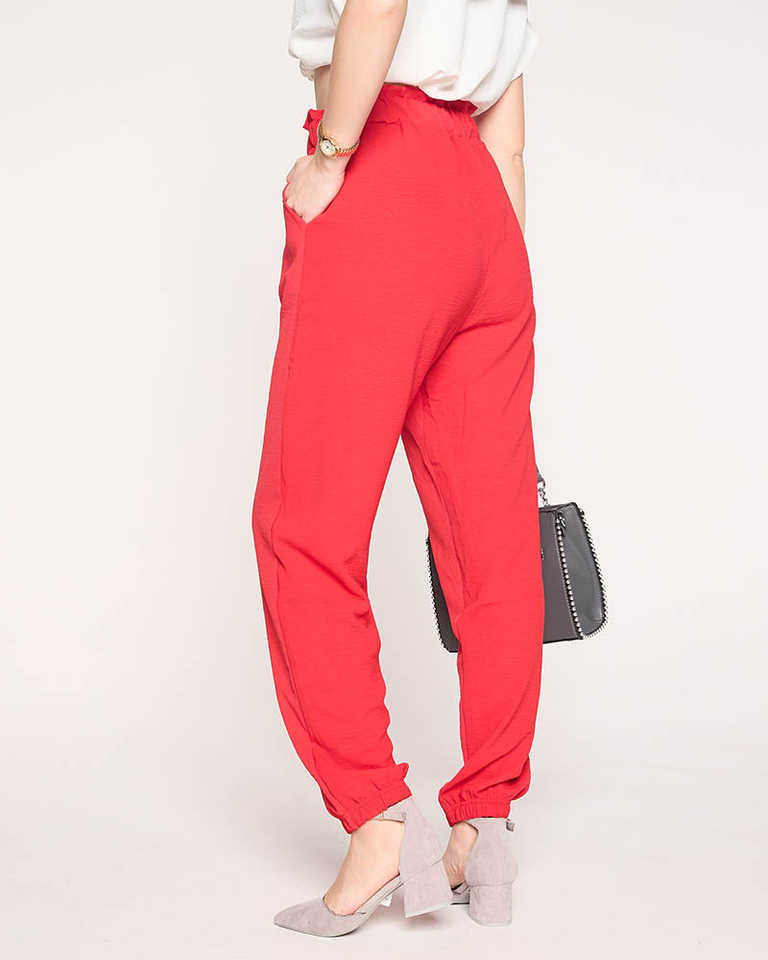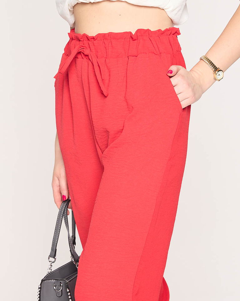 Женские тканевые брюки красного цвета PLUS SIZE - Одежда