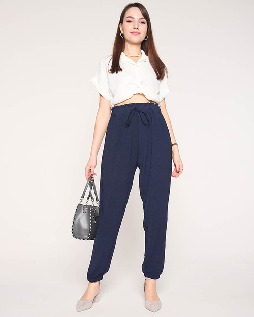 Женские тканевые брюки темно-синего цвета PLUS SIZE - Одежда