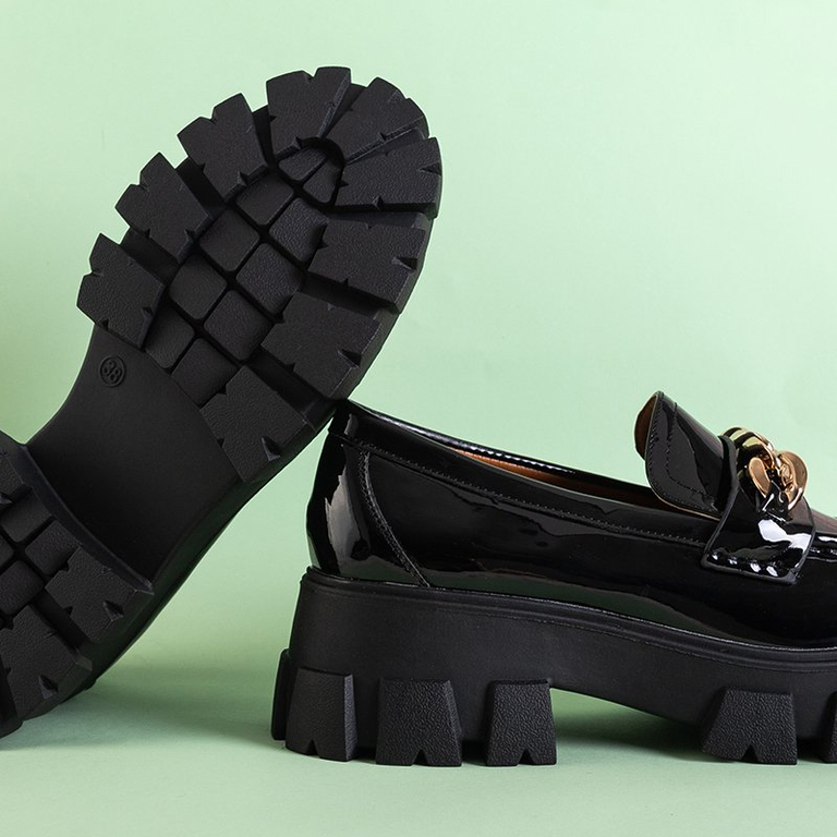 OUTLET Женские черные лаковые слипоны с цепочкой Guinewra - Обувь
