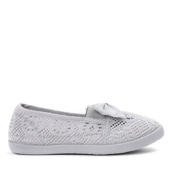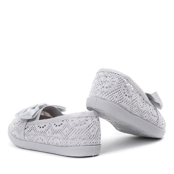 - Серые слипоны для детей. Материал выполнен из ткани с кружевной отделкой. Верх украшен атласной лентой. Идеально подходит для повседневного использования! Примечание: товар имеет царапины на материале.