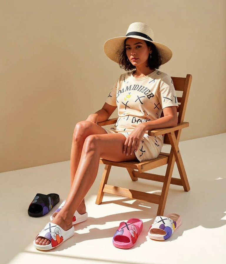 • Удобные шлепанцы для женщин из резинового материала. Интересный принт добавляет им стиля!