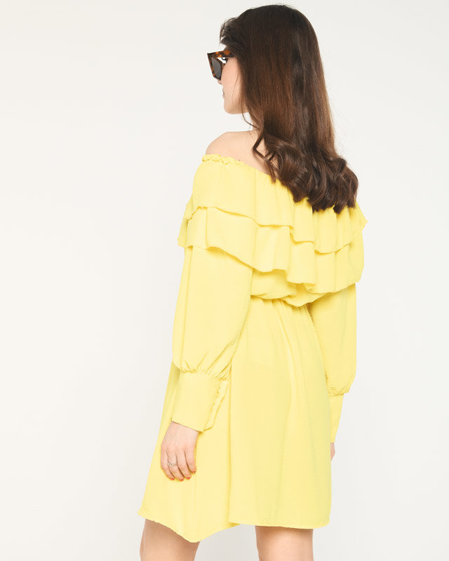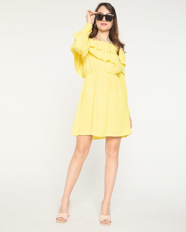- Красивое женское платье из полиэстерной ткани. Модель имеет оборки на вырезе, длинные рукава и эластичную резинку в талии и плечах. Идеально подходит для лета! Точность измерения (+/-) 1 см.