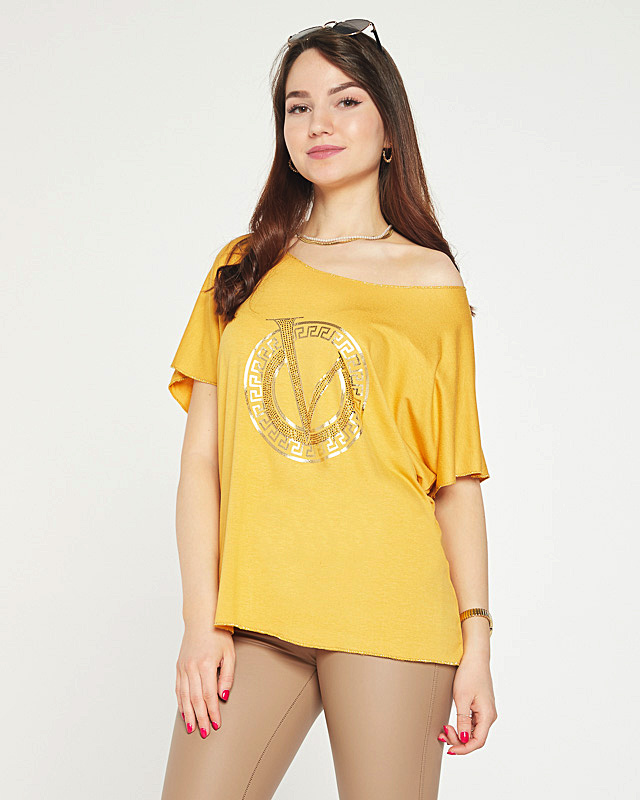 - Женская футболка с модным принтом, украшенная цирконами. Изготовлен из тонкой, мягкой и эластичной ткани. Вырез украшен золотой нитью. ПРИМЕЧАНИЕ: Точность измерения (+/-) 1 см..