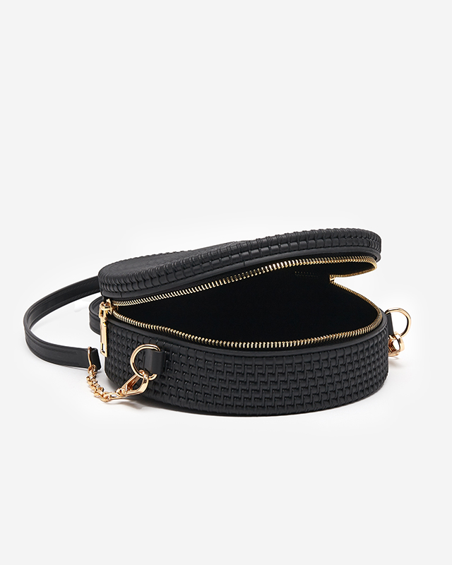 - Уникальная женская круглая сумка из резинового материала с тиснением. Модель на молнии, внутри одно отделение без дополнительных карманов. Поставляется с длинным ремешком на защелке без возможности регулировки.