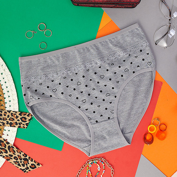 Серые хлопковые женские трусы с сердечками - Нижнее белье