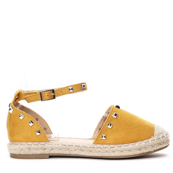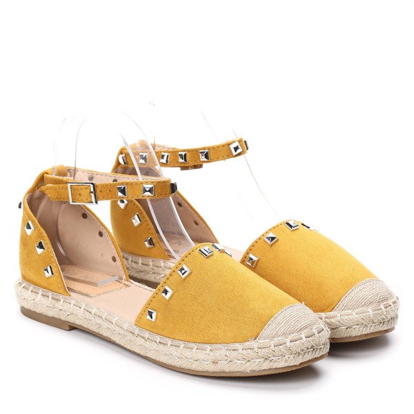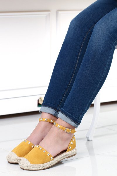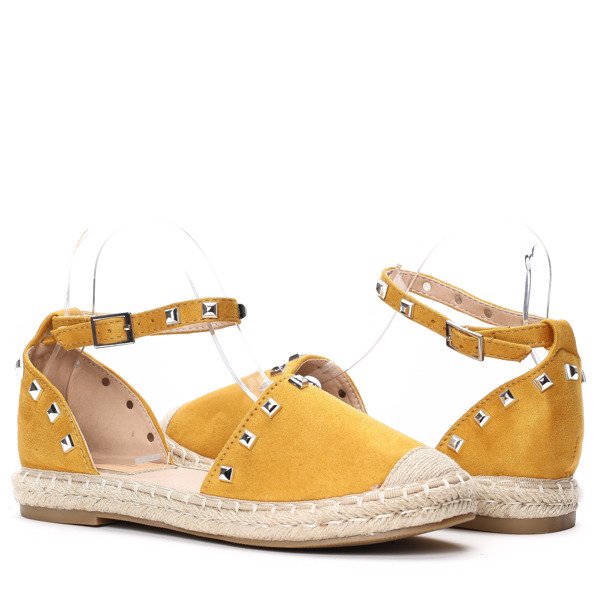 Żółte, odkryte espadryle z ćwiekami- Obuwie