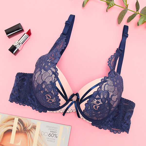Чувственный кружевной бюстгальтер розового и темно-синего цветов - Нижнее белье