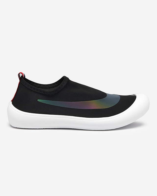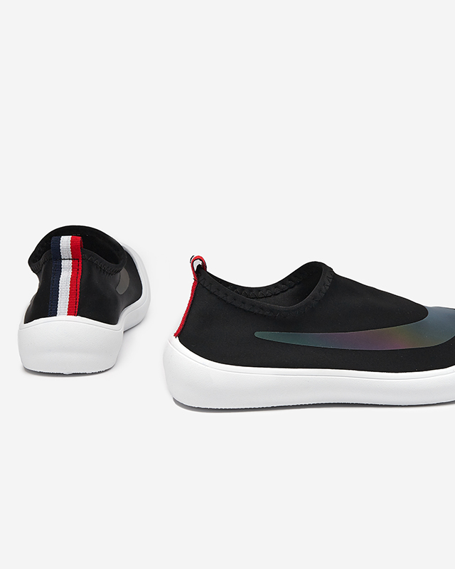 - Женские спортивные туфли без шнурков на плоской подошве. Верх и стелька выполнены из тканевого материала. Пара, которую вы едите, украшена голографической вставкой. Примечание: товар имеет царапины на материале.