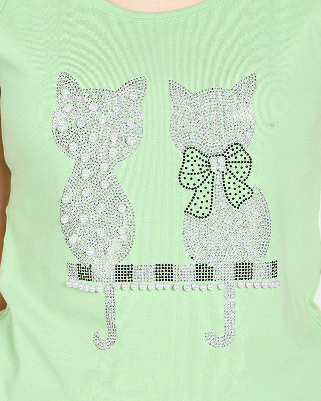 • Прелестная женская базовая майка на широких бретелях из хлопчатобумажной ткани. Передняя часть украшена принтом в виде кошек из циркона и жемчуга. ПРИМЕЧАНИЕ: Точность измерения (+/-) 1 см. Размеры измерены плоско.
