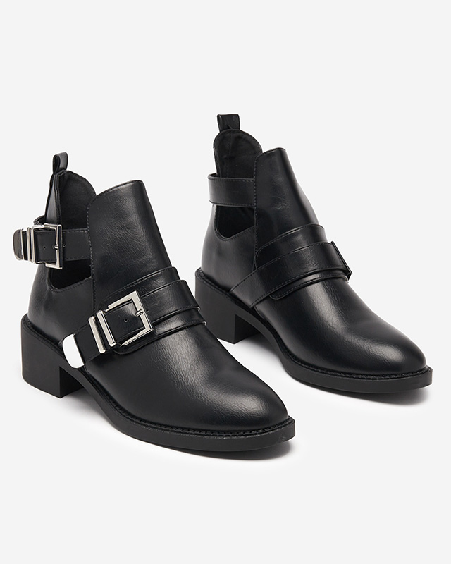 - Ботинки на низком каблуке из экокожи, имеют тонкий утеплитель. Верх с вырезами, украшен пряжками. БОТИЛЬОНЫ ЖЕНСКИЕ ЧЕРНЫЕ ИЗ ЭКО-КОЖИ SPIRITS
