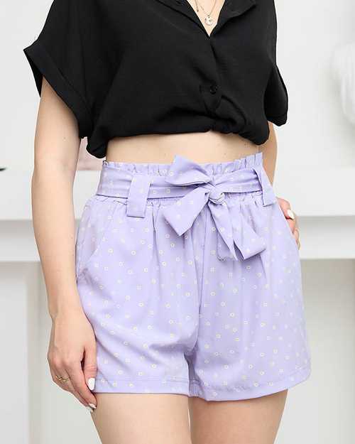 Фиолетовые женские текстильные шорты с рисунком в цветочек - Одежда