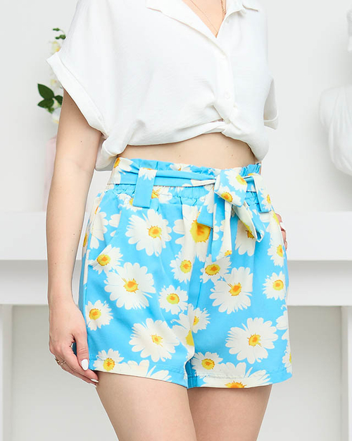 Шорты женские синие из ткани с рисунком в цветочек - Одежда