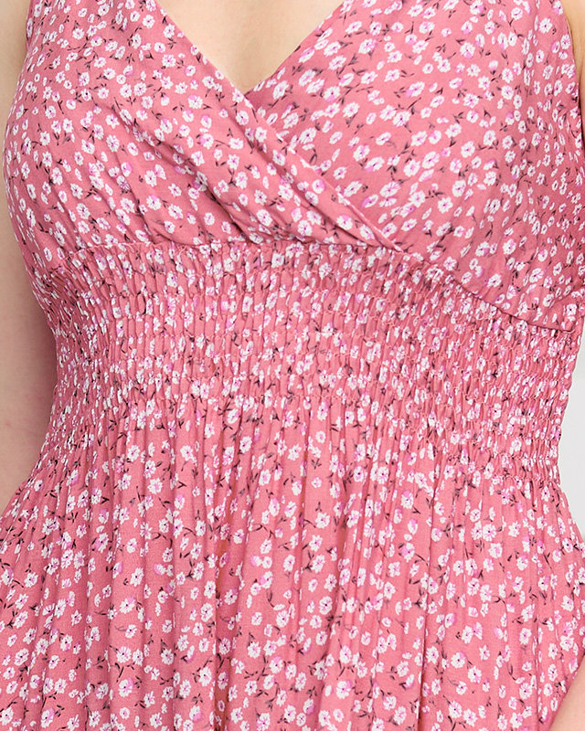 Коралловое короткое платье с мелким цветочным узором - Одежда