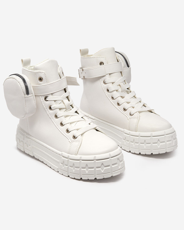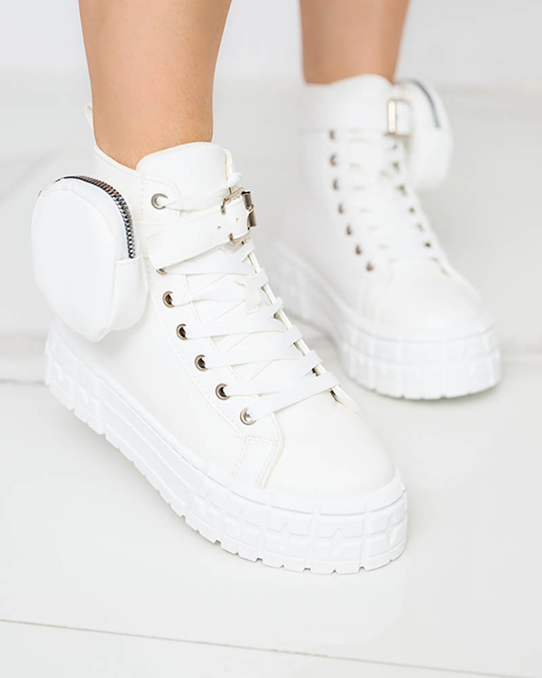 - Оригинальная женская высокая спортивная обувь на платформе. Верх на шнуровке из экологичной кожи, внутри стелька из ткани. Дополнительная сумочка на лодыжке. Хороший выбор для каждой женщины!