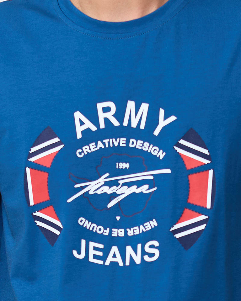 • Классическая мужская футболка с высоким содержанием хлопка. Модель с короткими рукавами и круглым вырезом горловины. Передняя часть футболки украшена принтом. ПРИМЕЧАНИЕ: Точность измерения (+/-) 1 см.