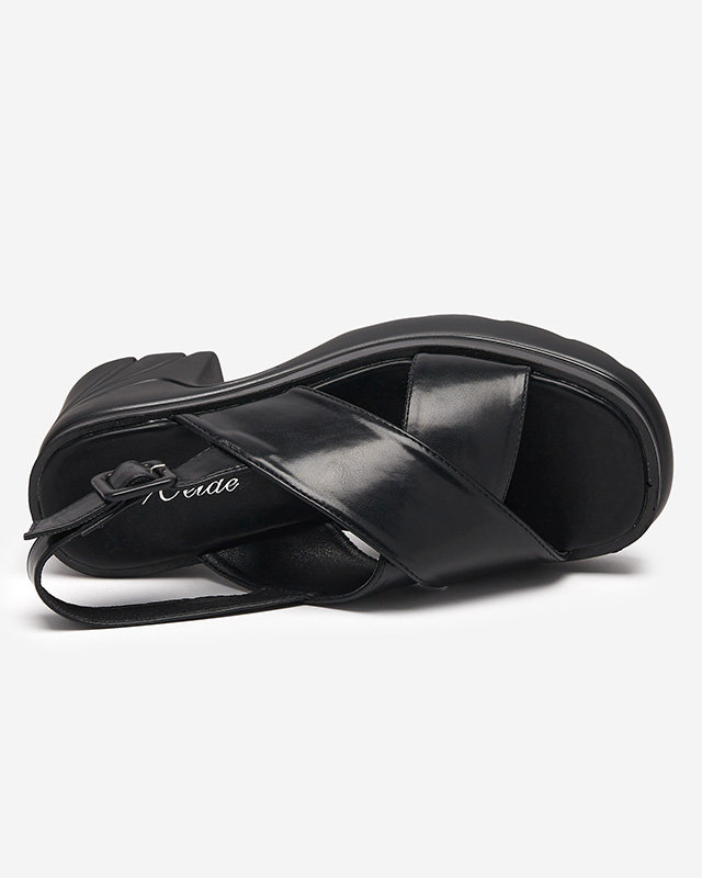 Черные женские босоножки на толстой шпильке Feine - Обувь