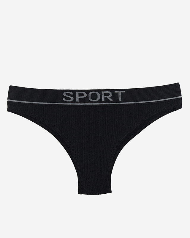 Женские черные трусики в рубчик со спортивными надписями - Нижнее белье