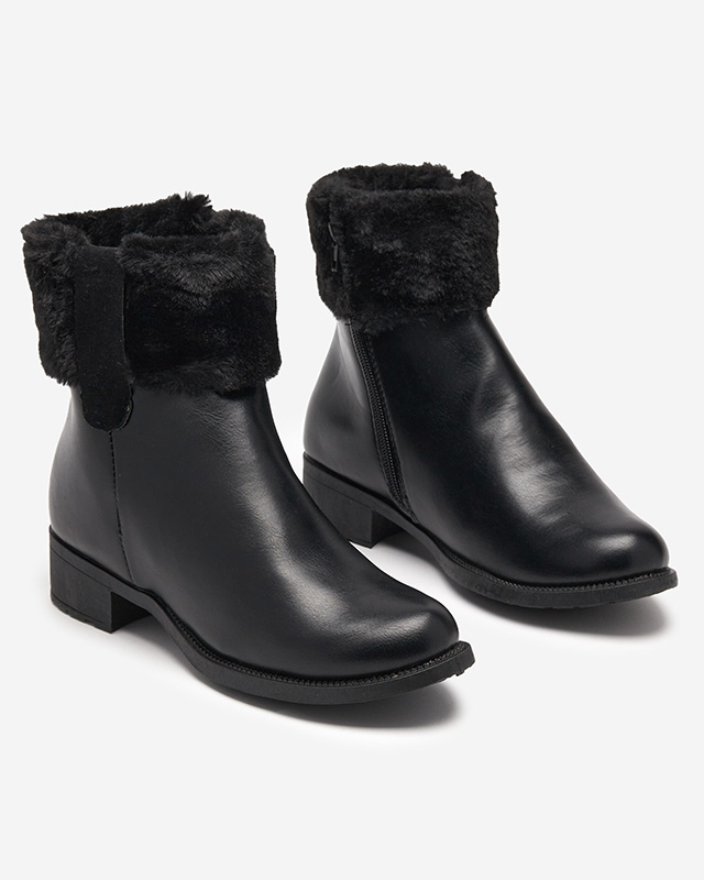- Сапоги на плоской подошве из экокожи. Имеют тканевую вставку. Верх украшен мехом. САПОГИ ЖЕНСКИЕ ЧЕРНЫЕ ИЗ КОЖИ SABOLA
