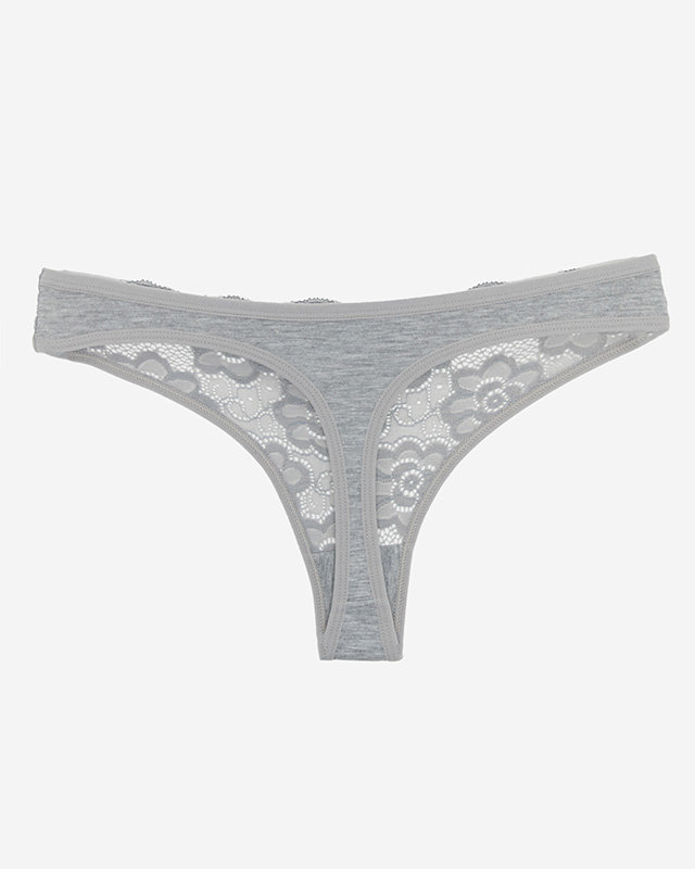 Серые однотонные кружевные трусики женские, стринги - Нижнее белье