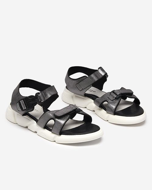 Детские блестящие сандалии цвета графит Leepe - Обувь
