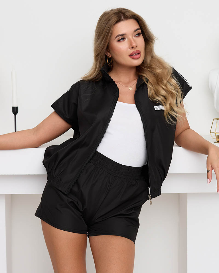 - Удобный женский спортивный комплект из тонкого дышащего материала. Толстовка без рукавов, шорты имеют 2 накладных кармана, пояс на резинке. ПРИМЕЧАНИЕ: Точность измерения (+/-) 1 см.