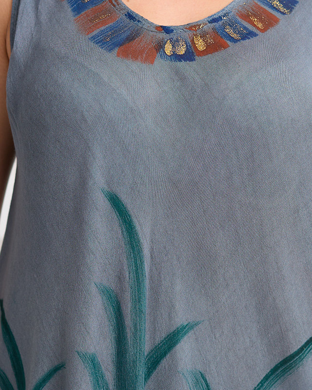 Женская серая накидка с рисунком и платьем в цветочек - Одежда