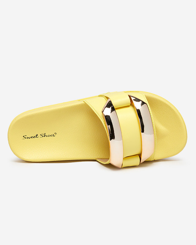 Желтые женские тапочки с золотым орнаментом Serina - Обувь