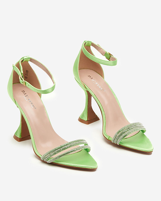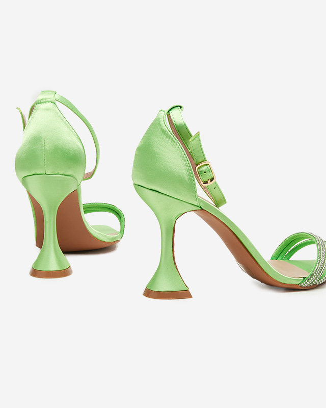 OUTLET Зеленые женские босоножки на высоком каблуке с декоративными фианитами Manestri - Обувь