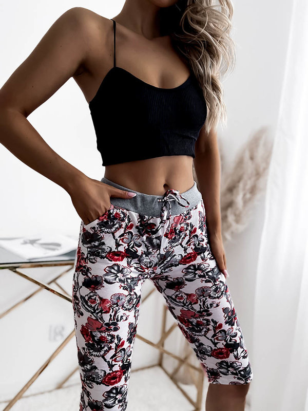 • Удобные женские шорты 3/4 с карманами, выполненные из хлопковой ткани в цветочек. Модель имеет резинку и завязки на талии. ПРИМЕЧАНИЕ: Точность измерения (+/-) 1 см.