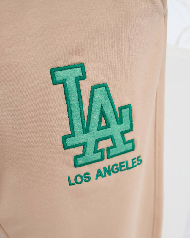 Женские бежевые спортивные штаны с цветной нашивкой - Одежда