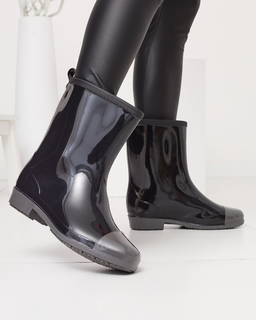 Черные лакированные женские веллингтоны с серым носом Xolina- Footwear