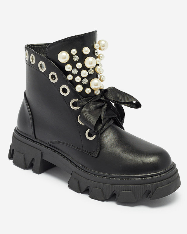 - Сапоги женские на плоском каблуке из экокожи, внутри утеплены пластиком. Верх украшен жемчугом, модель шнуруется лентой и застегивается на молнию. ЧЕРНЫЕ ЖЕНСКИЕ ТУФЛИ ТЕПЛЫЕ САПОГИ LEGATI