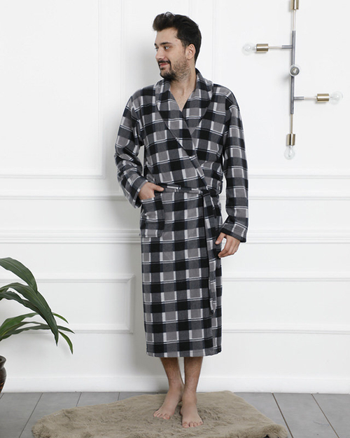 • Длинный мужской халат в клетку, изготовлен из хлопкового материала. Модель завязывается на поясе, имеет карман и высокий воротник. Идеально подходит для любого сезона. ПРИМЕЧАНИЕ: Точность измерения (+/-) 1 см.
