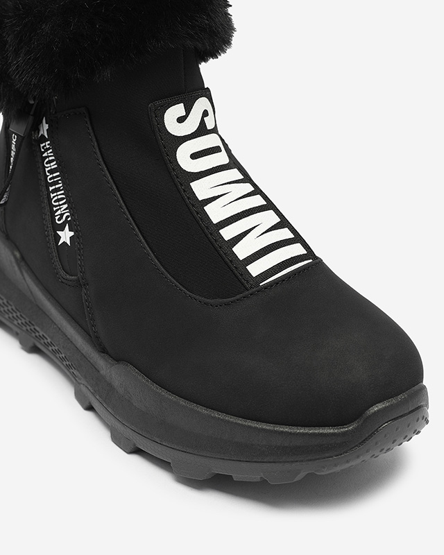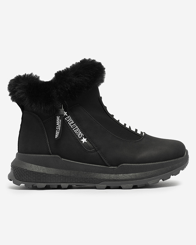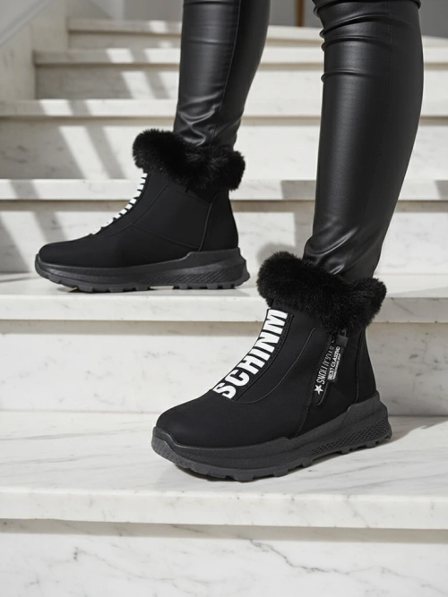 - Женские ботинки, изготовленные из экологической кожи, внутренняя часть утеплена мягким мехом. Спереди голенища эластичная вставка с декоративной надписью, обувь застегивается на молнию. ЧЕРНЫЕ БОТИНКИ ЖЕНСКИЕ УТЕПЛЕННЫЕ SCHERR