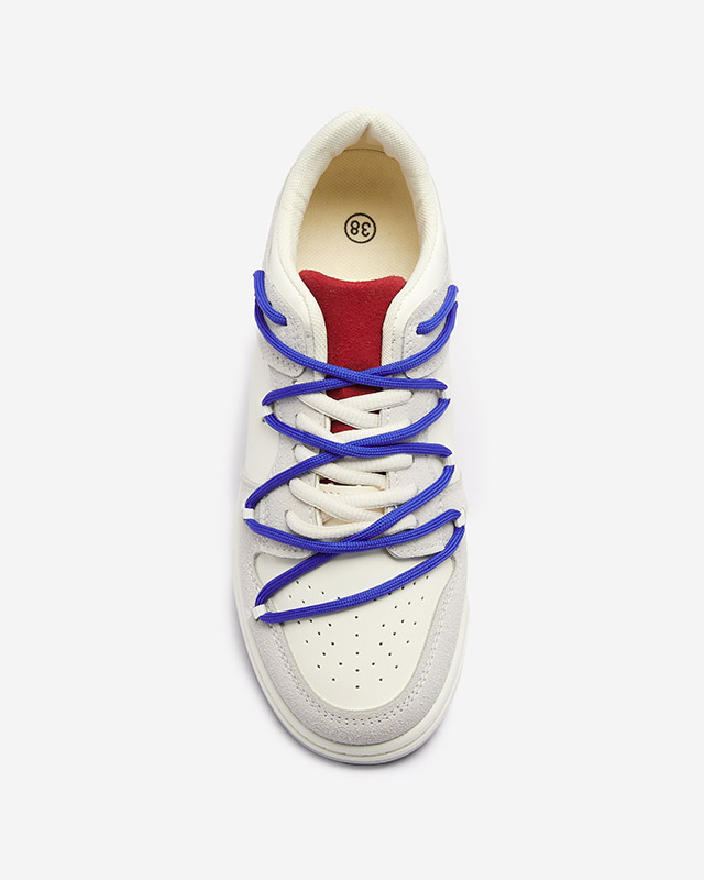 Бело-серые женские спортивные кроссовки с темно-синими шнурками Olierinc - Обувь