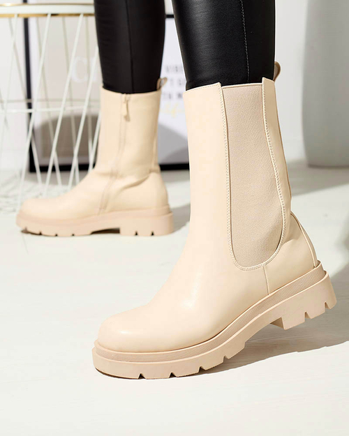 Бежевые женские высокие сапоги на плоском каблуке Vedesa - Одежда