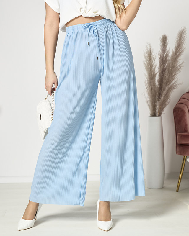 Женские широкие плиссированные брюки-палаццо синего цвета - Одежда