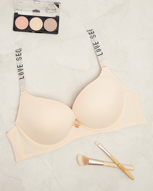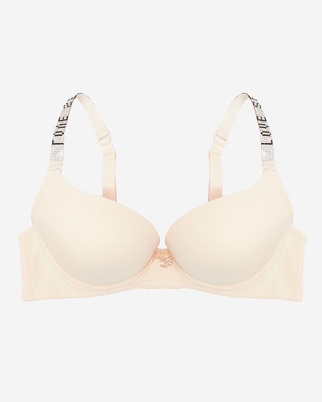 Бежевый однотонный бюстгальтер с декорированными бретелями - Нижнее белье