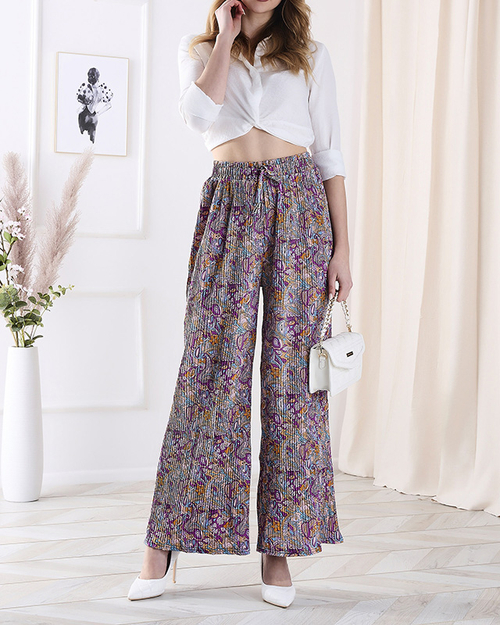 Выкройка женских брюк с широкими штанинами фиолетового цвета - Одежда