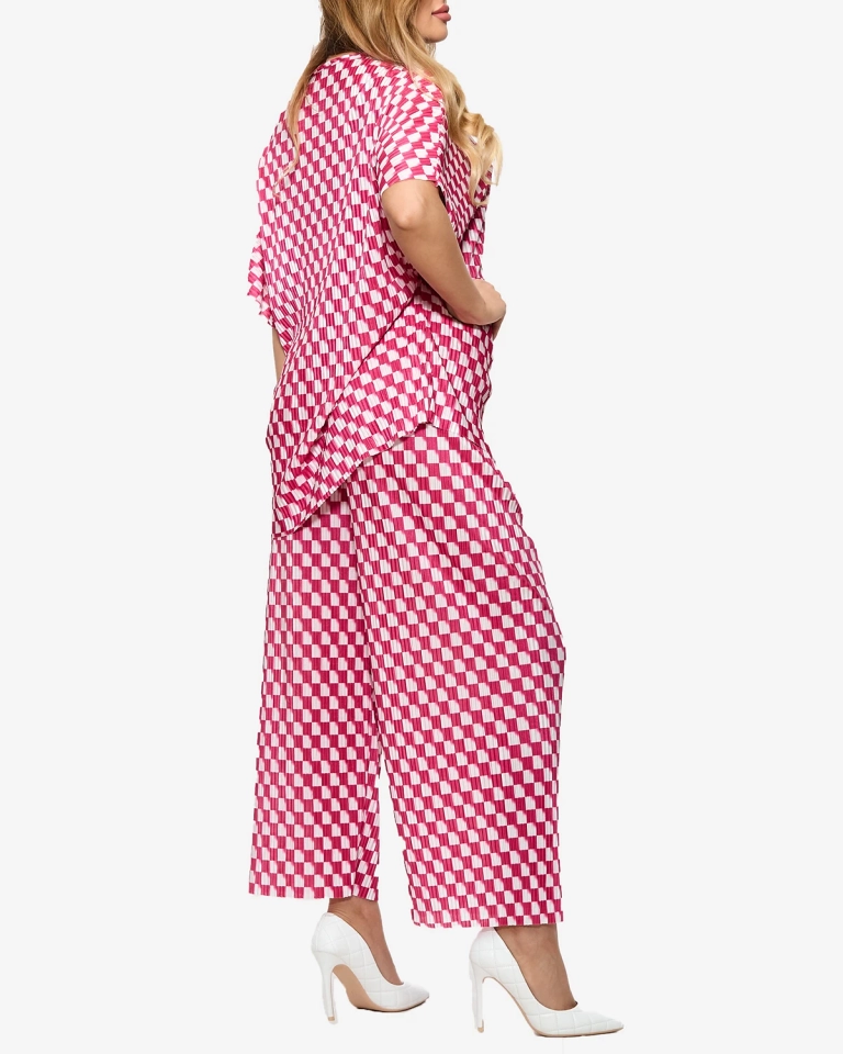 Женский плиссированный узорчатый комплект цвета фуксии - Одежда