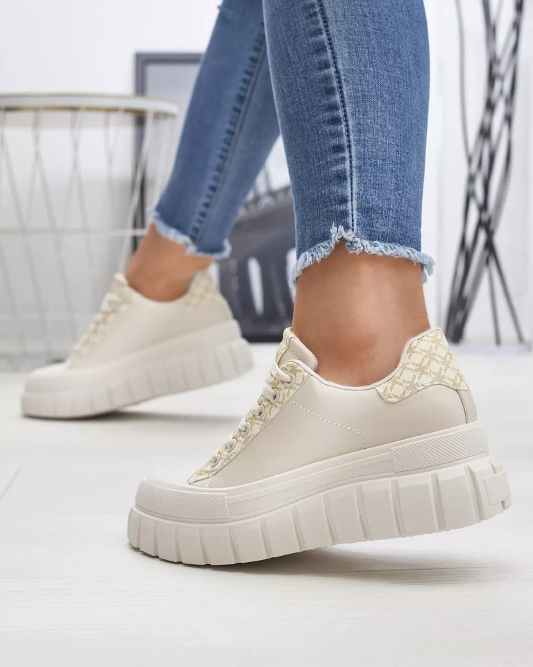 Повседневные женские кремовые женские спортивные туфли с узорчатыми вставками Leritic - Обувь