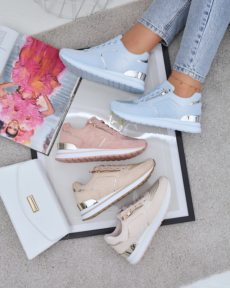 - Стильная женская спортивная обувь из органической замшевой кожи, имеет металлические вставки. Верх на шнуровке, украшенной цирконами, декоративная молния сбоку и тканевая стелька. Супер аксессуар для джинсов и толстовки или рубашки!