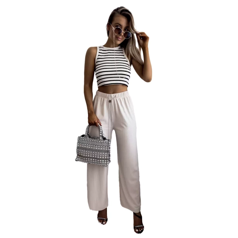 - Легкие женские широкие брюки, выполненные из ребристой ткани. Изделие имеет эластичный пояс и штанины, которые прекрасно подчеркнут талию. Must have этого сезона! ПРИМЕЧАНИЕ: Точность измерения (+/-) 1 см.
