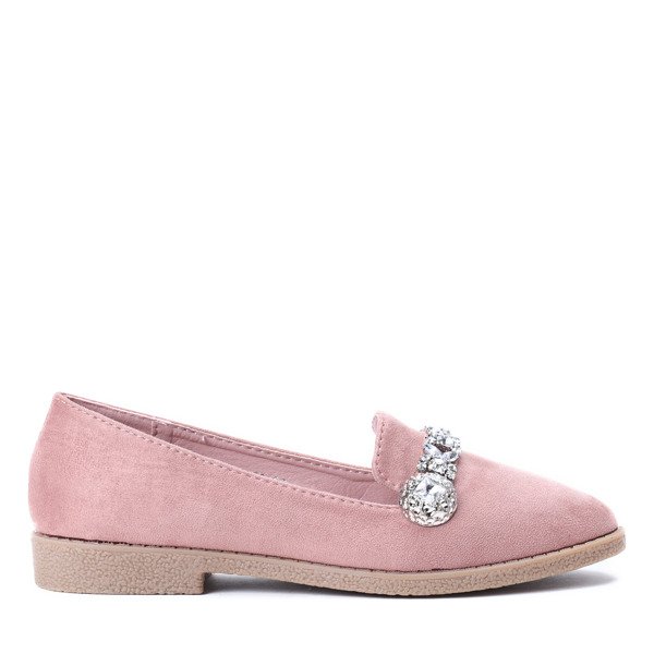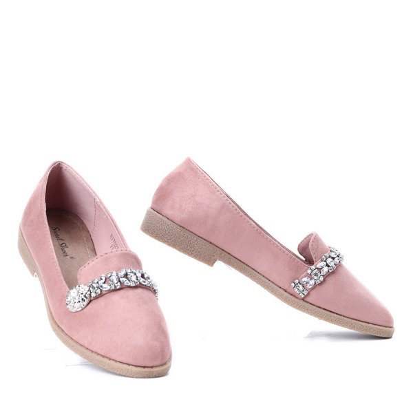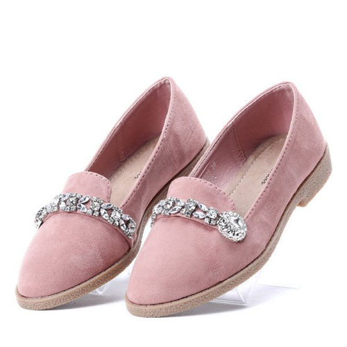 - Eleganckie buty w stylu mokasyn. Obuwie wykonane z ekologicznego zamszu. Wkładka z eko skóry. Na nosku srebrne kamyczki. Idealnie do wielu stylizacji!