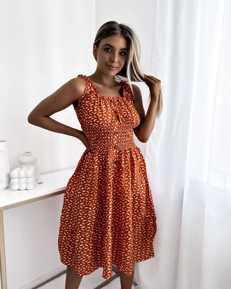Женское платье длиной до колена с принтом оранжевого цвета - Одежда