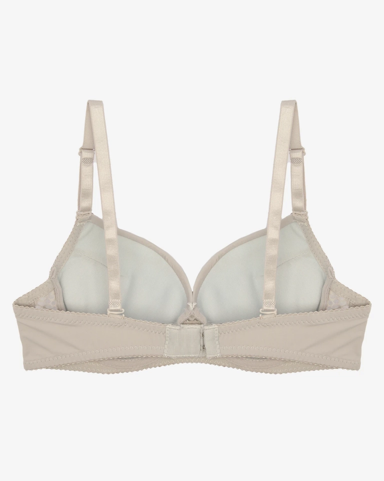 - Нежный женский бюстгальтер пуш-ап, украшенный кружевными вставками. Изделие застегивается сзади с помощью застежки-крючка. Бретели съемные и регулируются по длине. ПРИМЕЧАНИЕ: Точность измерения (+/-) 1 см.