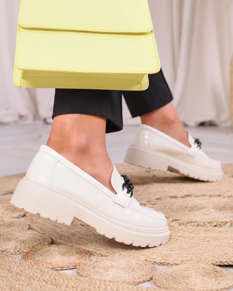 Женские лакированные мокасины кремового цвета Adolos- Footwear