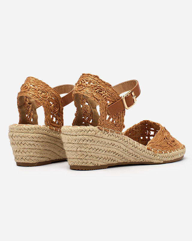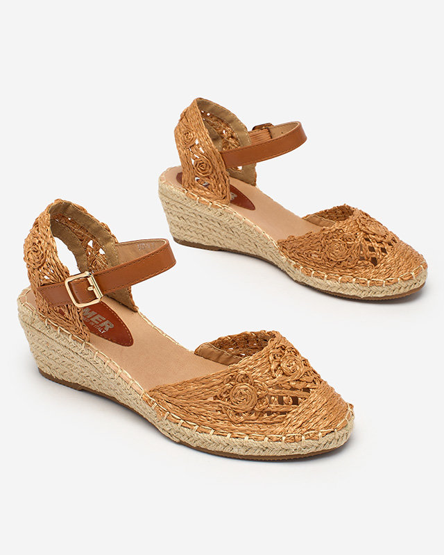 Royalfashion Плетеные женские сандалии на каблуке верблюжьего цвета Gluzja